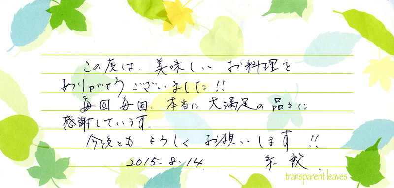 いつも頂くお客様からの温かいお言葉に深く感謝し、より一層喜んで頂けるよう日々精進しております。