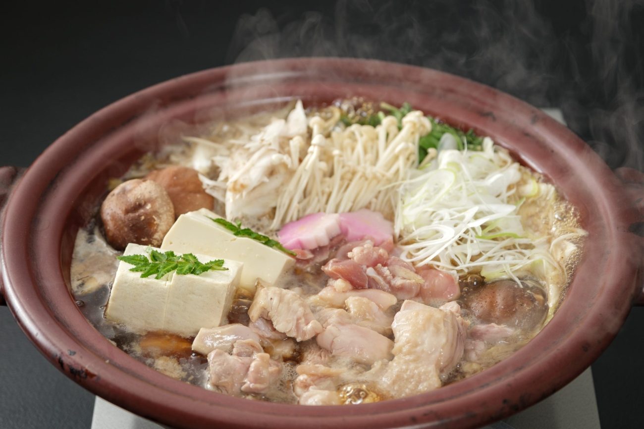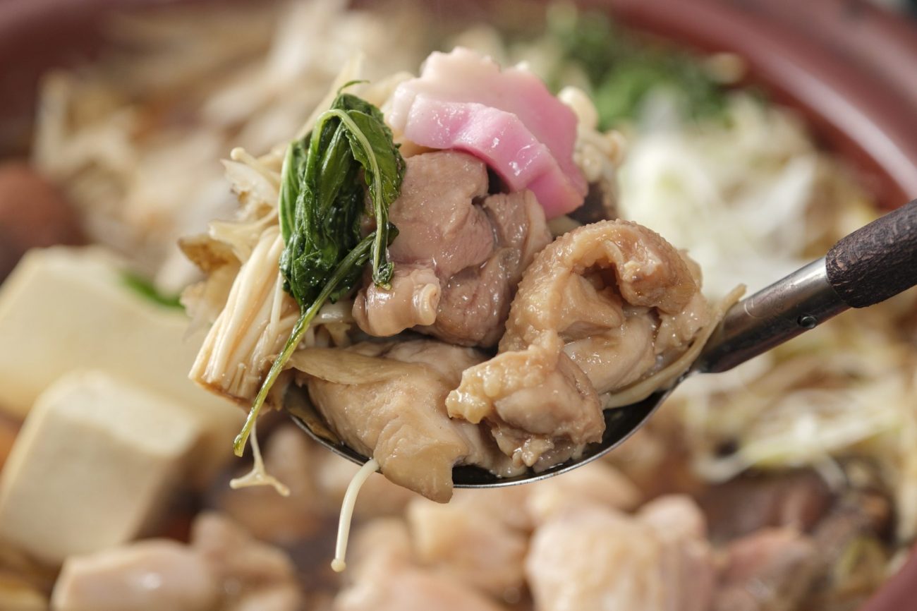- 材料に火が通ったら、水菜をいれて軽く火を通して地頭鶏とり鍋の完成です!