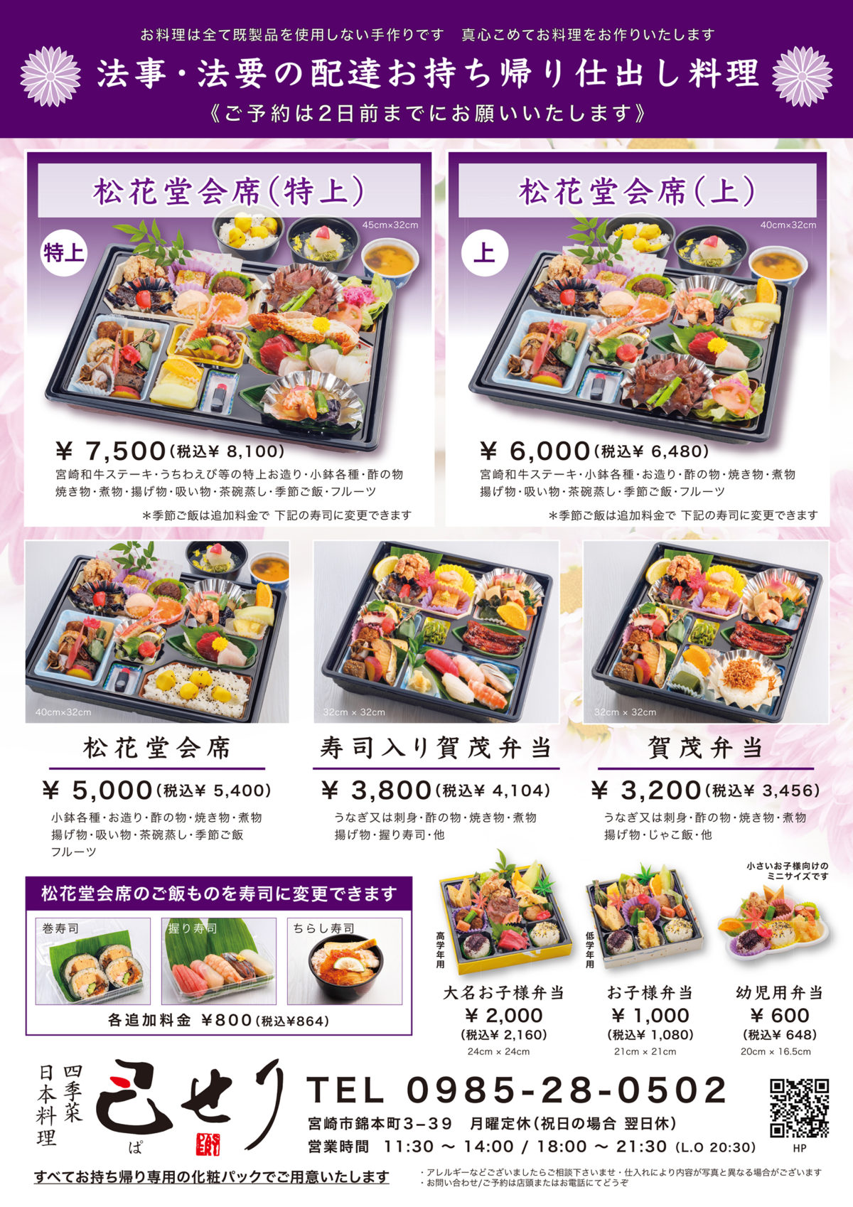 法事料理の会席料理はこちらから・お弁当はこちらから
